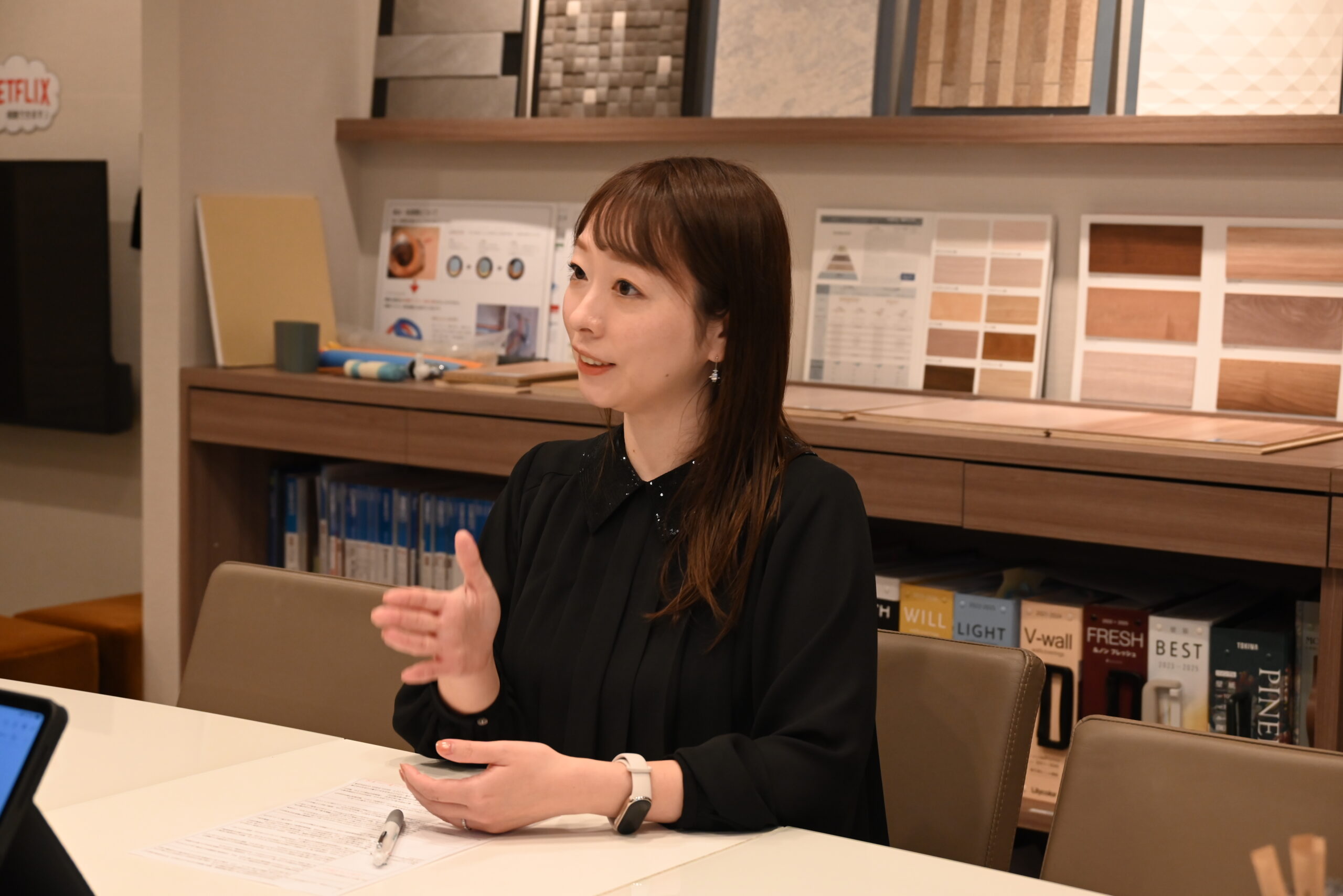 私は、施工部 施工業務課に所属しており、主にリノベーション工事の申請書類提出・マンション側規約の聞き取り・近隣住民の方へのご挨拶や問い合わせ対応、工事説明等を行っています。