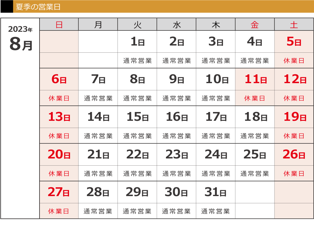 【夏季営業日のお知らせ】お盆も休まず営業!