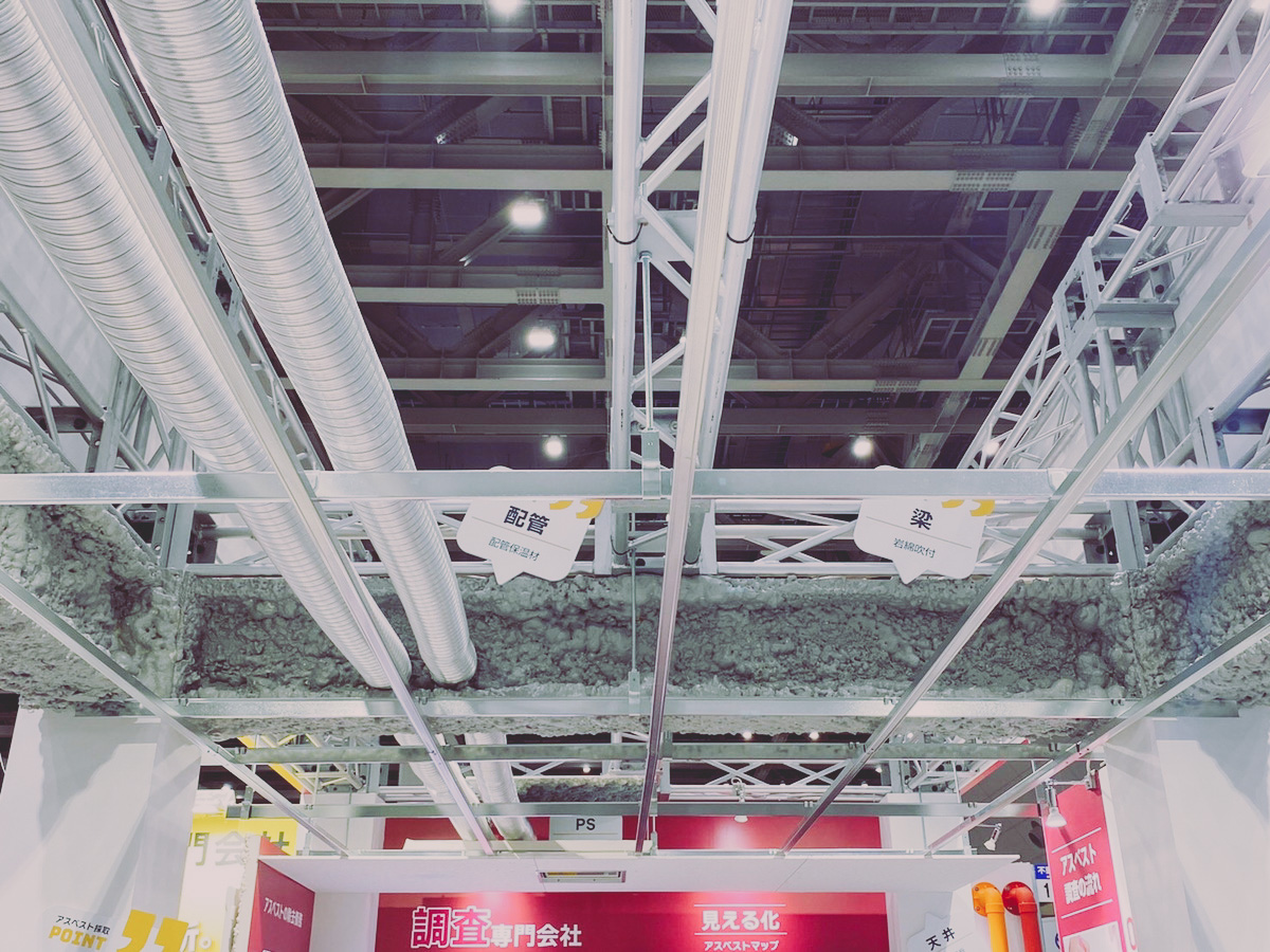 【アスベスト見える化Room】と称して、実際の採取現場を模したブースデザインを取り入れ、建物の「こんなところにアスベスト」を可視化した造りに、たくさんのご来場者様が足を止めて下さいました。