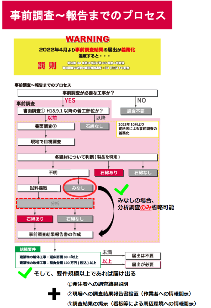 ”みなし”で工事をする場合においても事前調査結果の備え付け/届出/発注者への説明は義務!