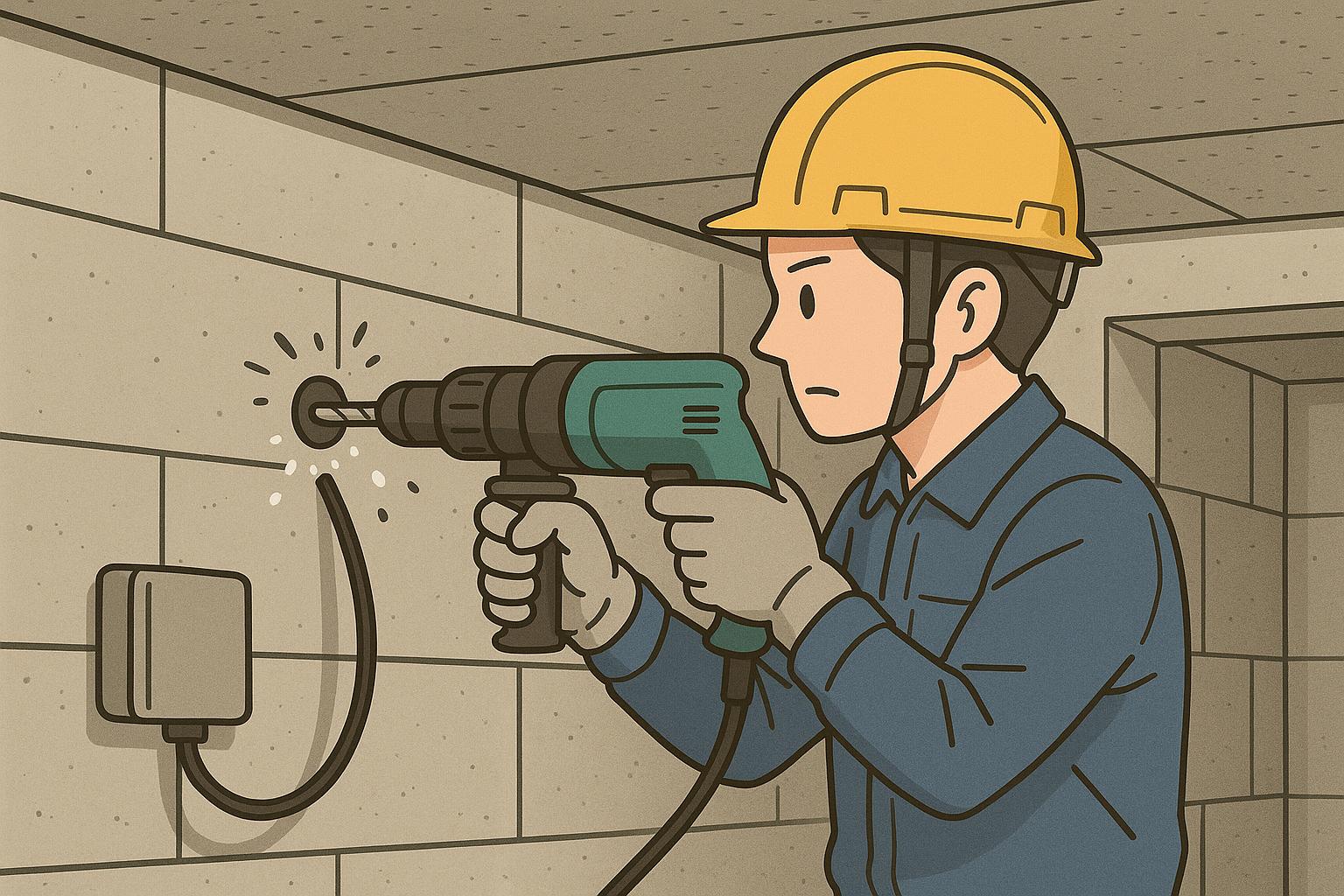 アンテナやアクセスポイントの設置、通信配線(LAN・光ファイバー)の敷設工事、機器設置に伴う壁面・天井への穴あけ、コア抜き等、これらの作業は、建物の仕上げ材や下地材に直接手を加えることになり、アスベストを含む建材に接触するリスクが生じます。