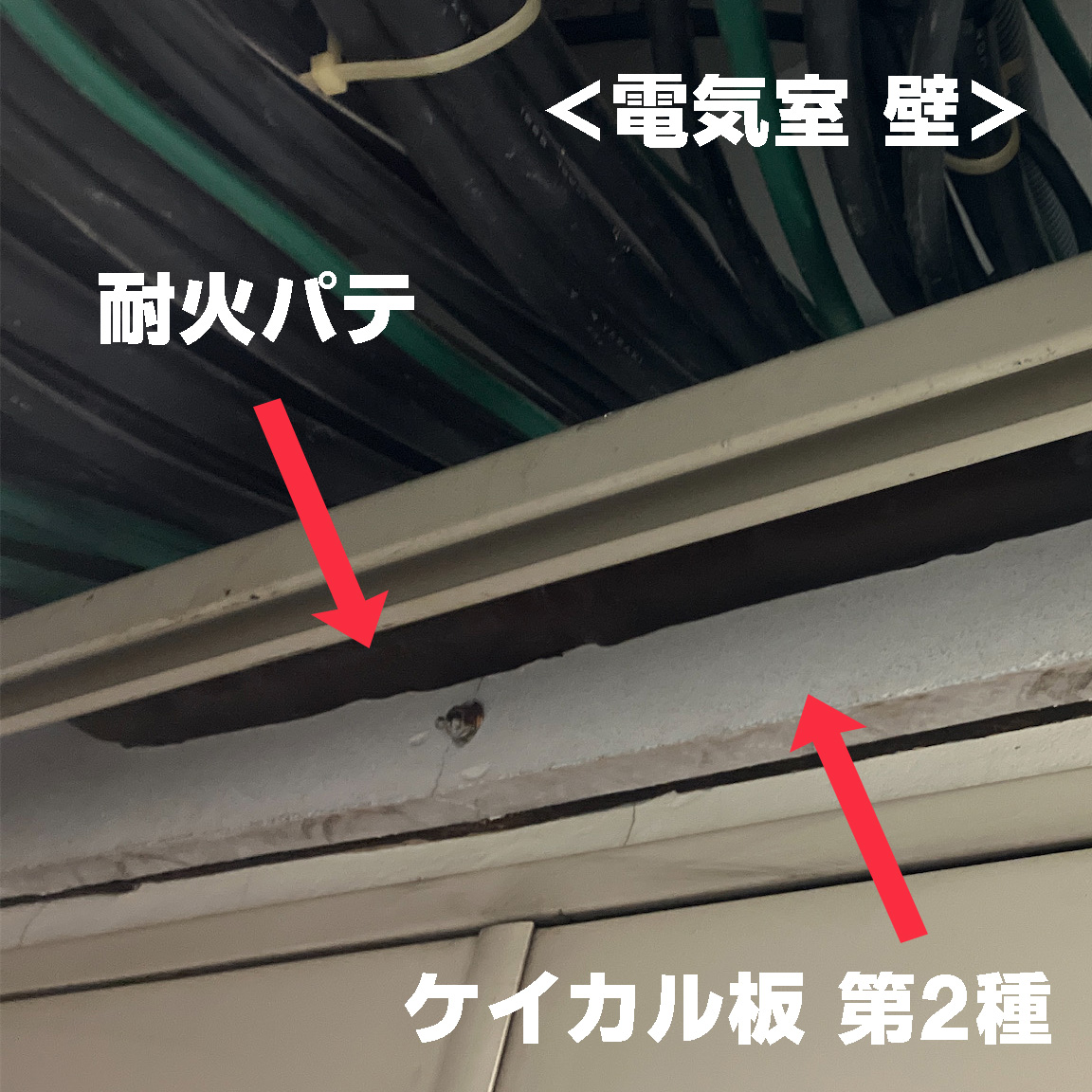 調査対象箇所の例として、下記写真の2か所は見落とされる場合がございます。特にけい酸カルシウム板(ケイカル板)第2種はレベル2建材のため飛散性も危惧されます。