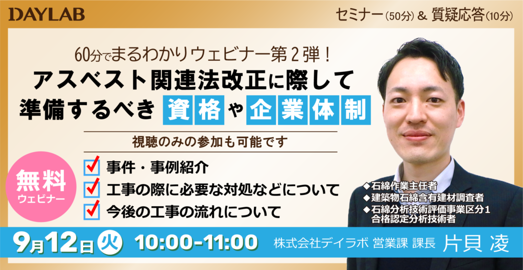 2023年10月の法改正より、アスベストの調査・分析に資格者による実施が必須となります。