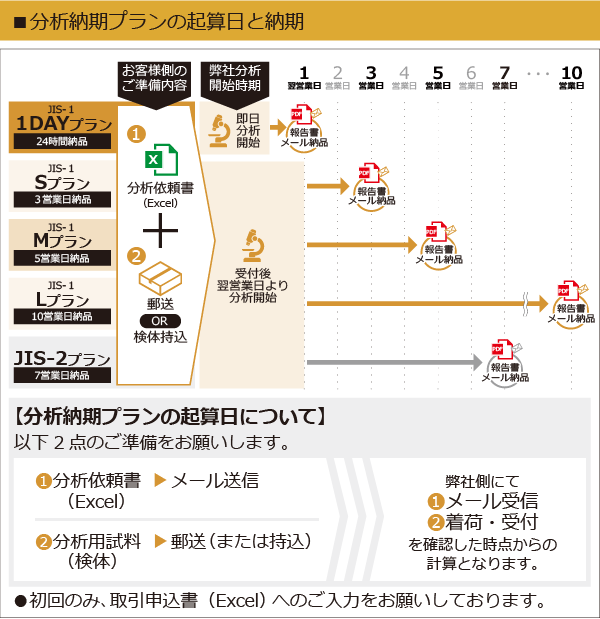 ※定量分析JIS-3,JIS-5 の場合+5 営業日、JIS-4 の場合+7 営業日納期を頂いております。