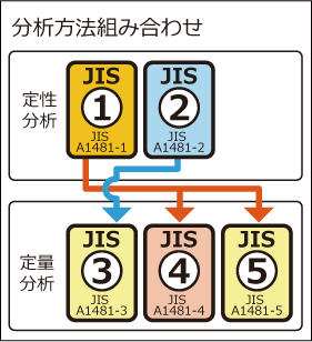 更に、各規格には定性→定量に進む組み合わせがあり、JIS-2に比べJIS-1の方が定量分析の選択肢は広がります。