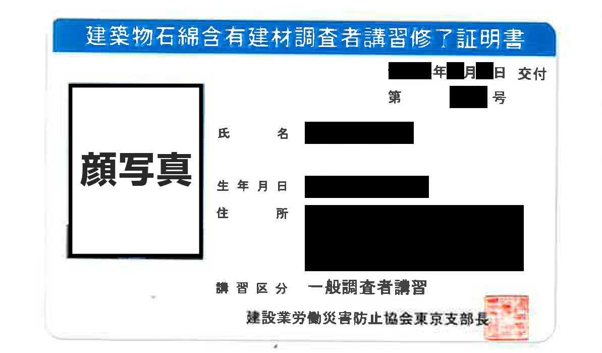デイラボでは、アスベスト分析を行った資格者の合格認定証をダウンロード出来るリンクも案内させていただいております。