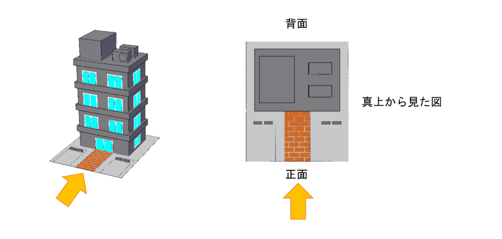 図のビルは全面同じ色の外装塗材で仕上げられており、見かけ上は一様に同じ建材だと思われます。