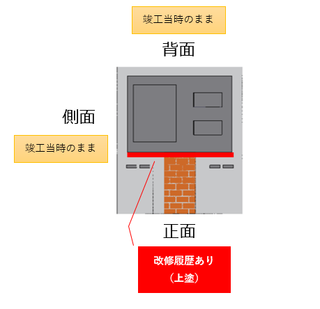 要約すると、目立つところ・見えるところは改修(上塗)を行っており、それ以外はそのままという状態です。且つ、見た目は同じような仕上げにすることが基本であり、見た目では判断が出来ないことが多いです。